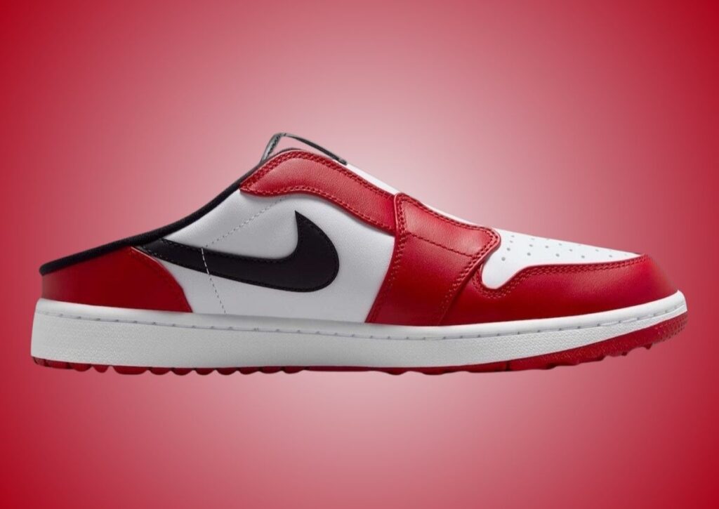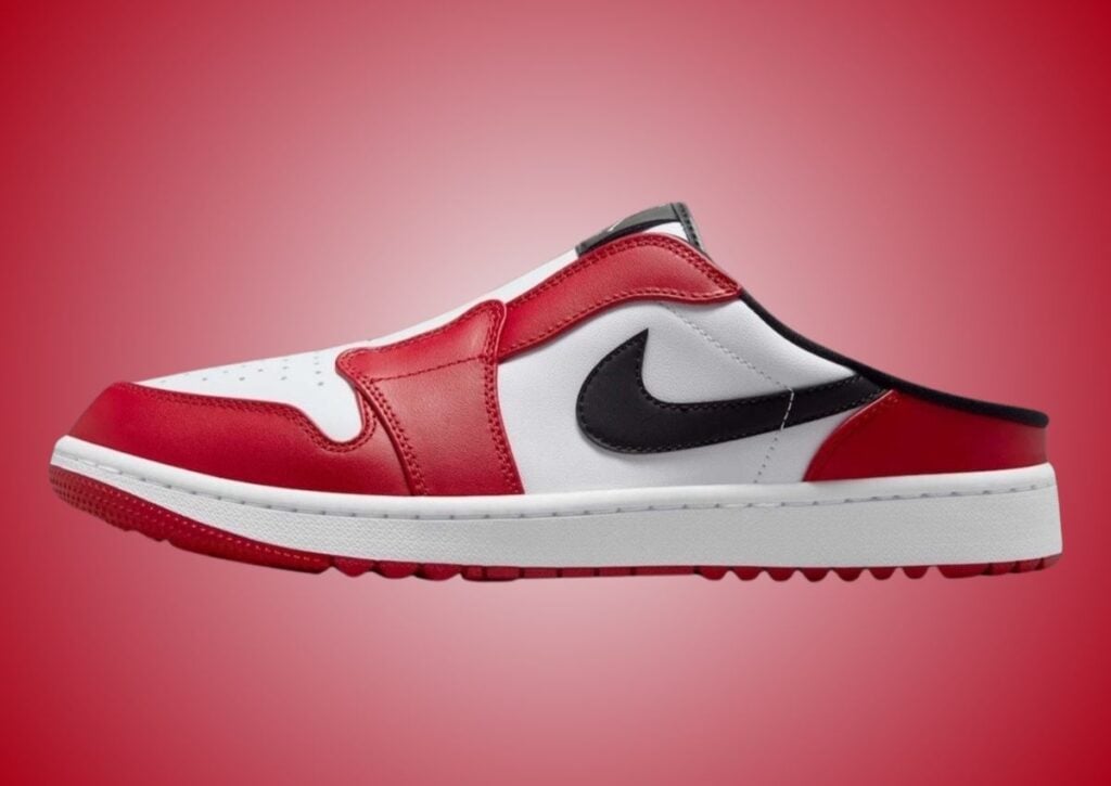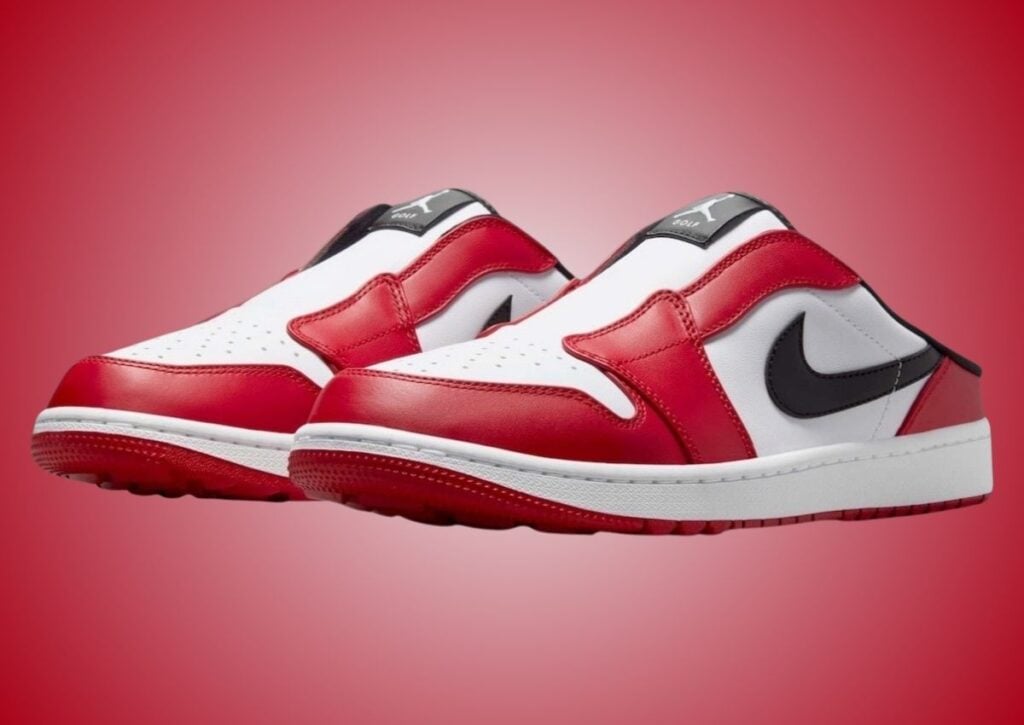 Jordan Brand will expand on the Air Jordan 1 Mule Golf releases with the addition of a classic colorway, the โChicagoโ iteration. Highlighted with a low-top build, it can also slip on, making it easy to wear.