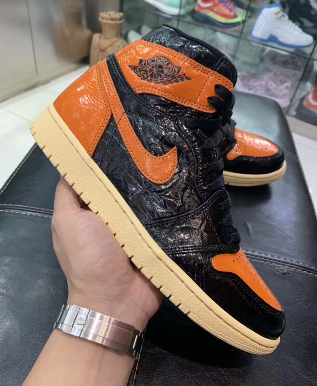 Update 6/4: We finally have a first look at the โShattered Backboardโ 3.0 Air Jordan 1. It will feature crinkled patent leather throughout the upper while Orange lands on the toe, Swoosh, around the heel, ankle and Nike Air branding on the tongue. Black lands on the panels, tongue and laces while a Cream White covers the midsole and outsole. Photos via zsneakerheadz, s.sam.group and solebyjc.