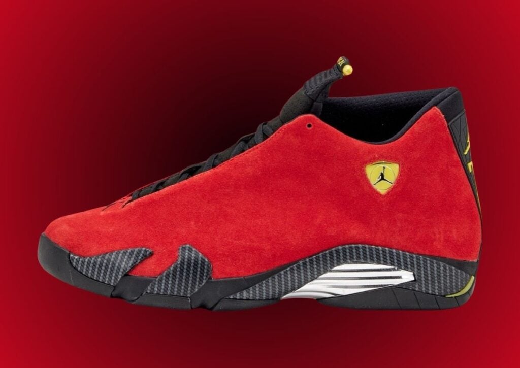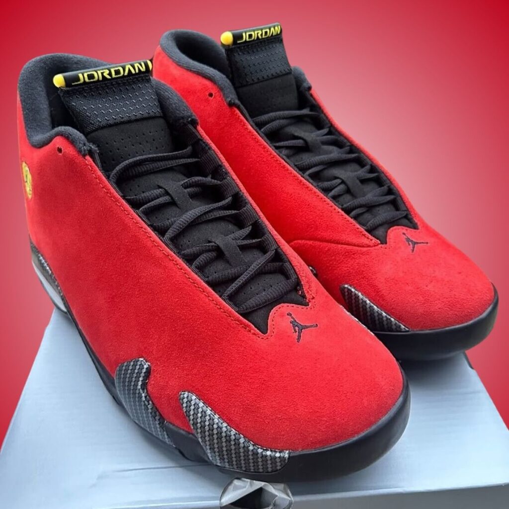 The Air Jordan 14 โFerrariโ will be released again on June 14, 2025. Retailing for $215, this pair is iconic for using Red suede and carbon fiber.