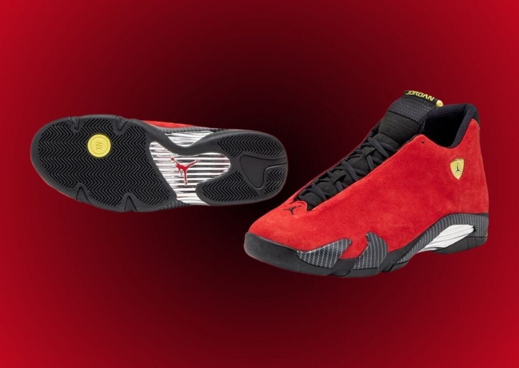 The colorway was so popular with the Air Jordan 14 that it sparked a series. In 2019, Jordan Brand launched the โBlack Ferrariโ iteration, which features carbon fiber on the midsole overlay and a quilted design on the medial side. The โReverse Ferrariโ was released in the same year and features carbon fiber and a one-piece upper.