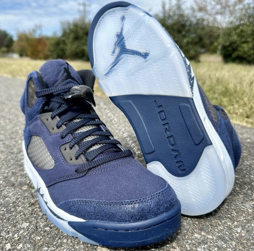 The Air Jordan 5 was originally released in 1990 and designed by Tinker Hatfield. Throughout the years, we have seen new and old colorways release, and for Holiday 2023, Jordan Brand will release the Air Jordan 5 “Midnight Navy“. The shoes also have ‘Georgetown’ vibes.
