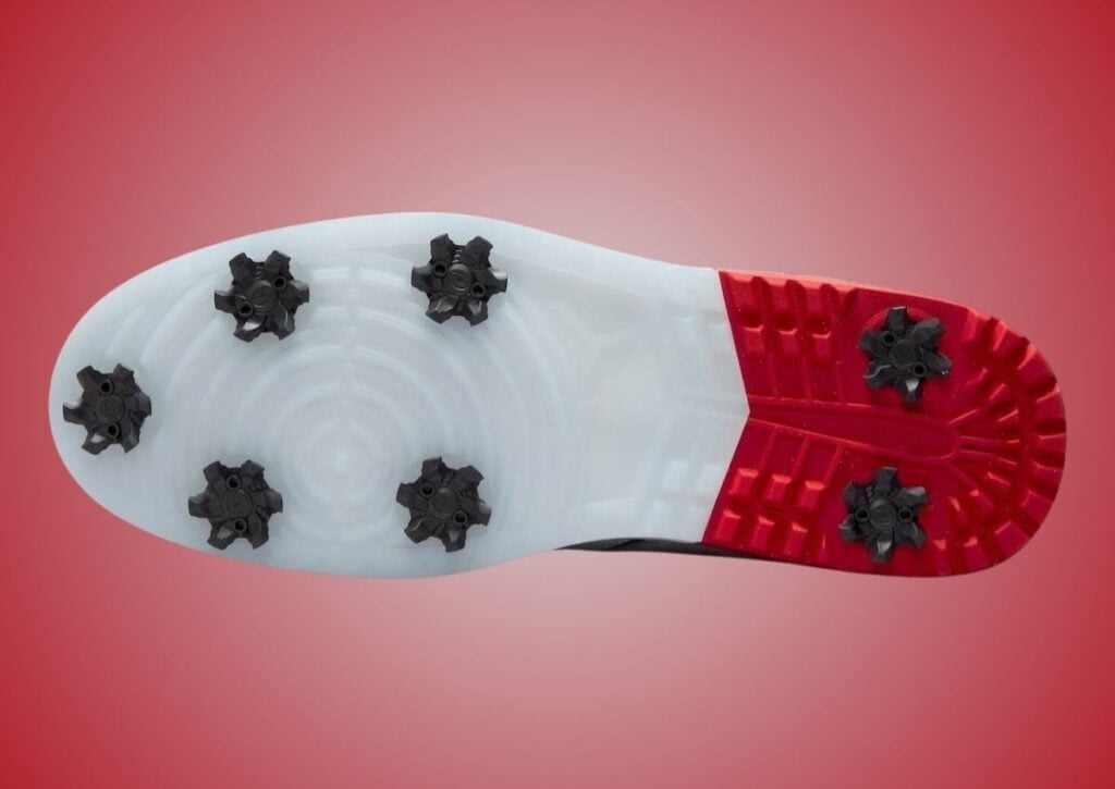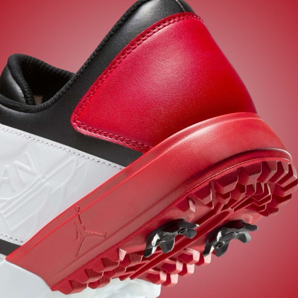 Featuring a Black, White, University Red, and Blue Tint color scheme. This golf-specific design preserves the classic appeal of an all-leather upper while incorporating the iconic Air Jordan 1-inspired toebox for nostalgia. Functional updates include an extended mudguard panel, showcasing a debossed Air Jordan Wings logo on the lateral side and a discreet Jumpman logo on the medial side. Jordan Golf branding graces the insole, while the tongue remains sleek and unembellished, emphasizing a clean, minimalist aesthetic. Other details include a split rubber midsole, while the outsole has integrated golf spikes.
