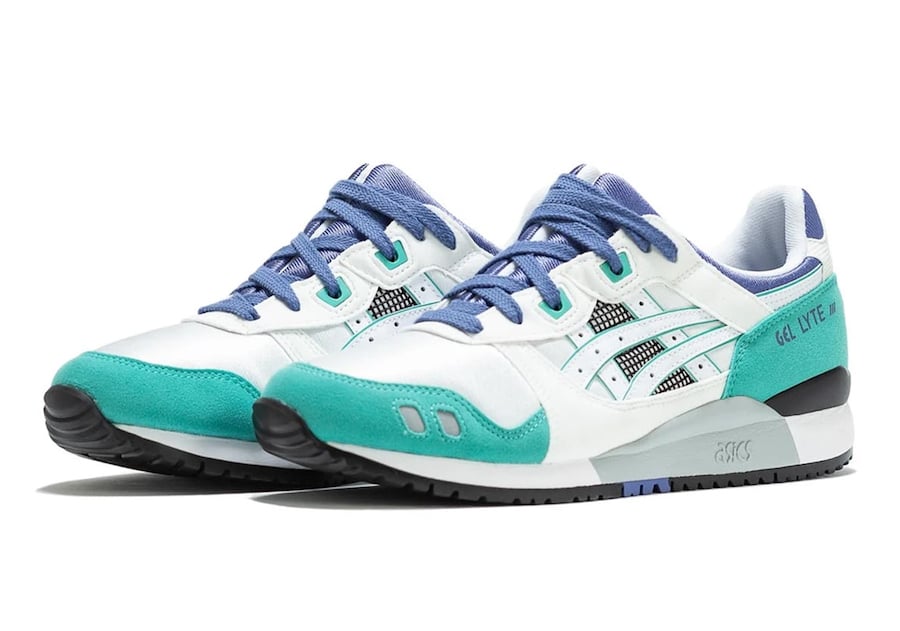 This pair of the Gel Lyte III comes with White across the base while Teal suede covers the overlays across the toe and heel. Following we have Blue used on the split tongue, laces, ankle and hinted on the heel while White covers the midsole and Black runs across the rubber outsole.