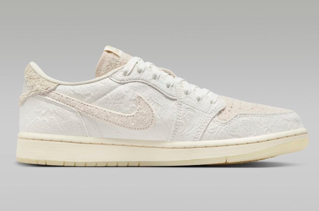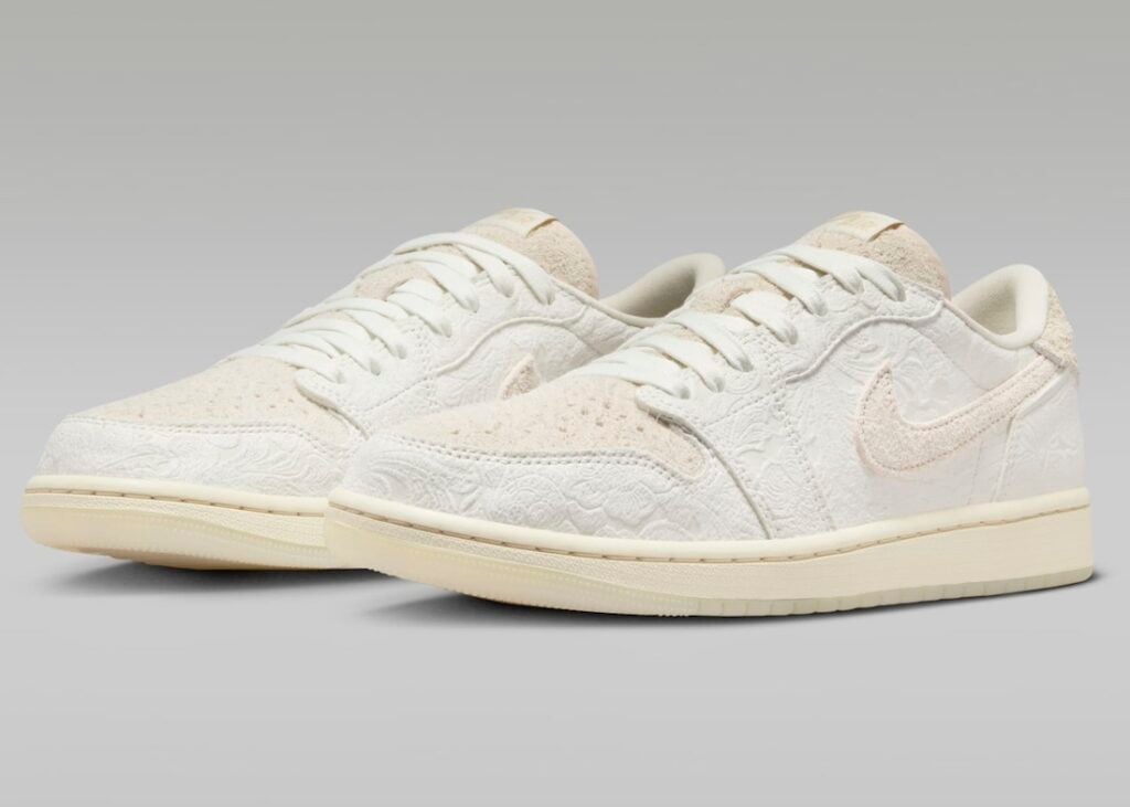 This Air Jordan 1 Low for Chris Paul comes dressed in a Light Cream and Sail color combination. Constructed with premium materials, the shoes have a subtle floral pattern across the upper. In addition, shaggy suede is placed on the Swoosh logos, toe box, tongues, and heel tabs. The traditional Nike Air branding appears on the tongue labels and the Wings logo is embroidered on the heels.Other details include a Sail midsole and a translucent outsole. Each pair will also come with special packaging and an extra set of laces.