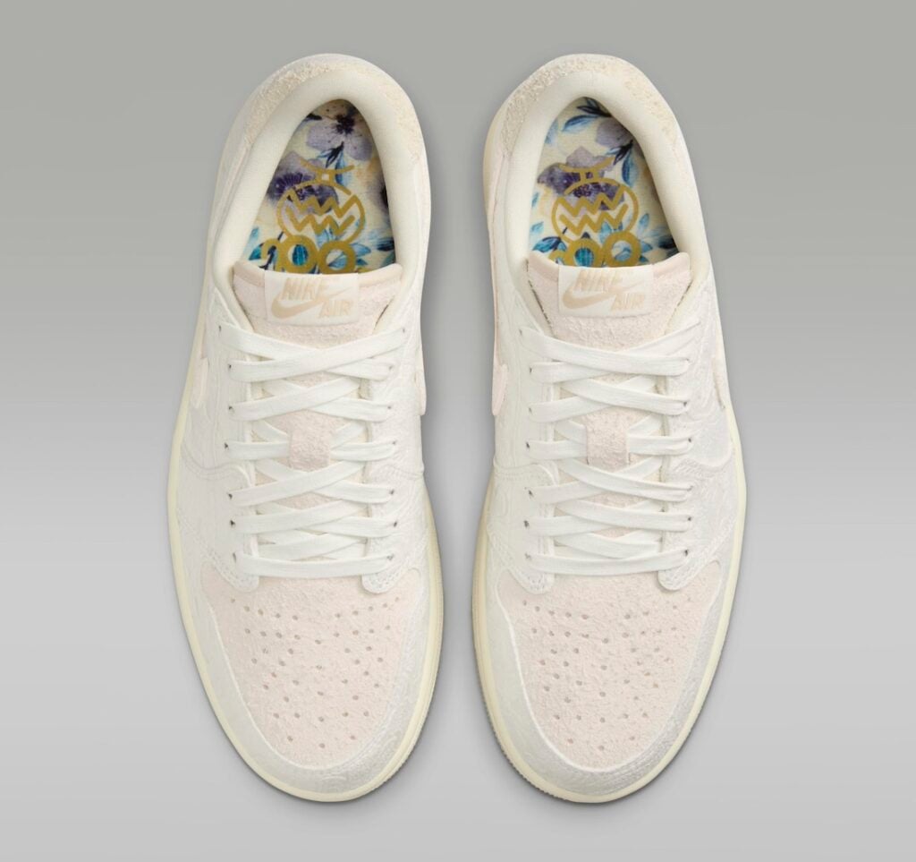 Jordan Brand member Chris Paul will debut a special collaboration during the Fall/Holiday season. Showcased is the Chris Paul x Air Jordan 1 Low OG “Give Them Flowers”, which has intricate details.