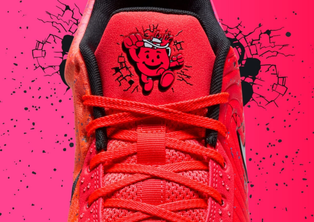 This Nike Ja 2 is highlighted in a Red-to-Pink gradient across the upper, inspired by the Kool-Aid Tropical Punch flavor. Nodding to the 90s, we have cracked detailing on the panels, referencing when the Kool-Aid Man would break through walls in the commercials. In addition, we have the Kool-Aid logo on the tongues, and his catchphrase, โOhhh Yeah!โ on the inside of the tongues. Throughout are water droplets, representing a cold glass of Kool-Aid. Other details include โ12:AMโ branding in the Kool-Aid font, and an icy Blue translucent rubber outsole.
