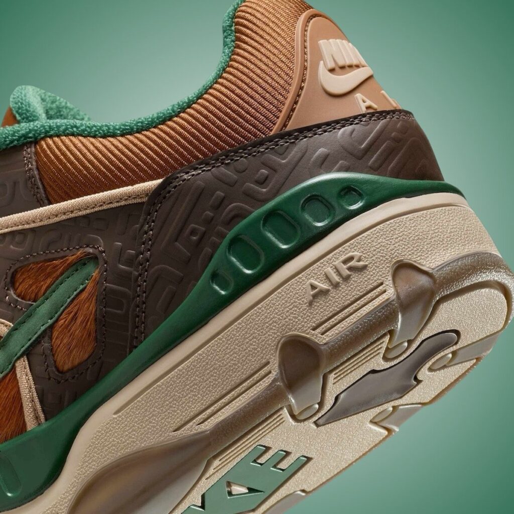 This Nike Air Force 3 Low by Nigo comes dressed in a Baroque Brown, Fir, Hemp, and Pecan colorway. Looking closer, it features faux pony hair across the base in a Brown hue, while Dark Green fills in the Swoosh logo, top eyelets, liner, and part of the midsole. A darker shade of Brown adorns the overlays with a unique design. Nigo branding graces the tongue with Nike Air displayed on the heels. Other details include a Light Brown midsole and a semi-translucent smokey rubber outsole.