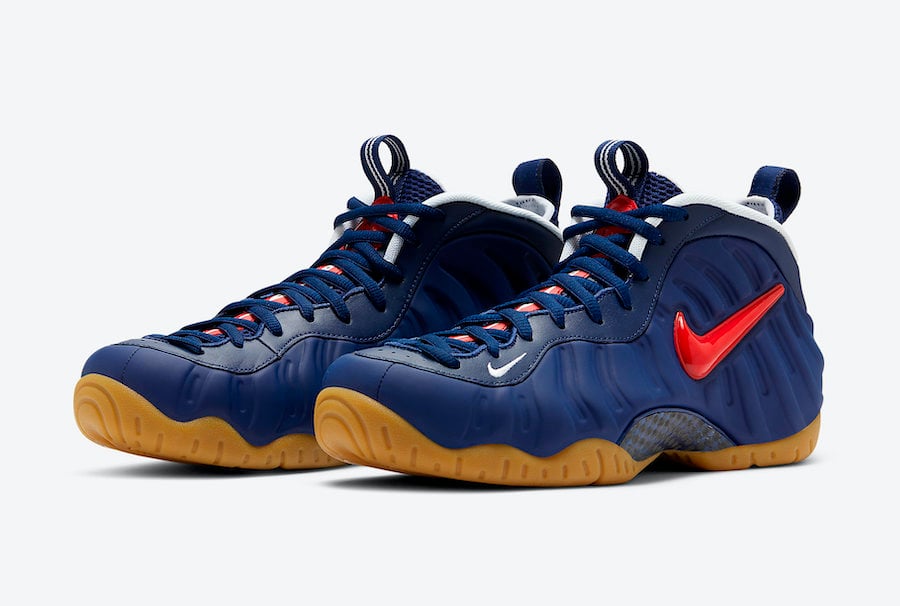 This Nike Air Foamposite Pro comes dressed in a Blue, Void, Gum Light Brown, White and University Red color combination. Highlighted with a Blue Foamposite shell while White is placed on the liner, mini Swoosh and heel branding. Following we have a Red Swoosh across the panels, the same color is seen on the tongue branding while a Gum rubber outsole completes the look.