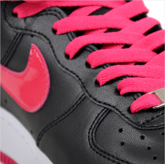 The Nike Air Force 1 just got better, as it has upgraded to the Nike Air Force 1 ’08, as opposed to its ’07 predecessor. The Nike Air Force 1 High Women’s gets the latest ’08 treatment in a classic black/pink colorway. This hightop AF1 uses a black leather upper with a pink patent leather swoosh to match the pink ankle strap, laces, and outsole. The white midsole always adds a nice touch to the shoe, making this a clean pair of kicks for any lady. Get your own pair today for a price of $120.
