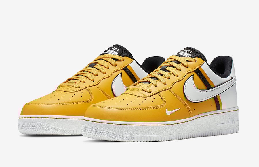 Presented here is four color options of the new Nike Air Force 1 Low which comes in your choice of Red, Black, Grey and Yellow. Each pair comes highlighted with White on the side while a mini Swoosh lands by the toe while a large Swoosh runs across the panels. Following we have Nikeโs โTeam Sportsโ label on the tongue with โNike Airโ branding on the heel.