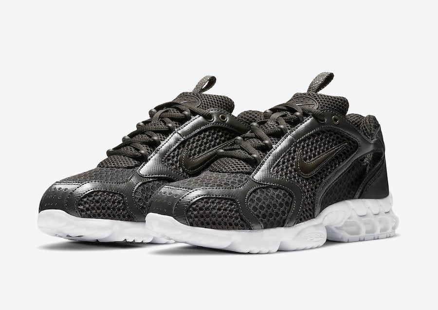 Going over this Nike Air Zoom Spiridon Cage 2 they come with Dark Grey mesh on the upper, leather on the overlays and matching tonal Swoosh logos on the panels. Finishing the look is White across the midsole and rubber outsole.