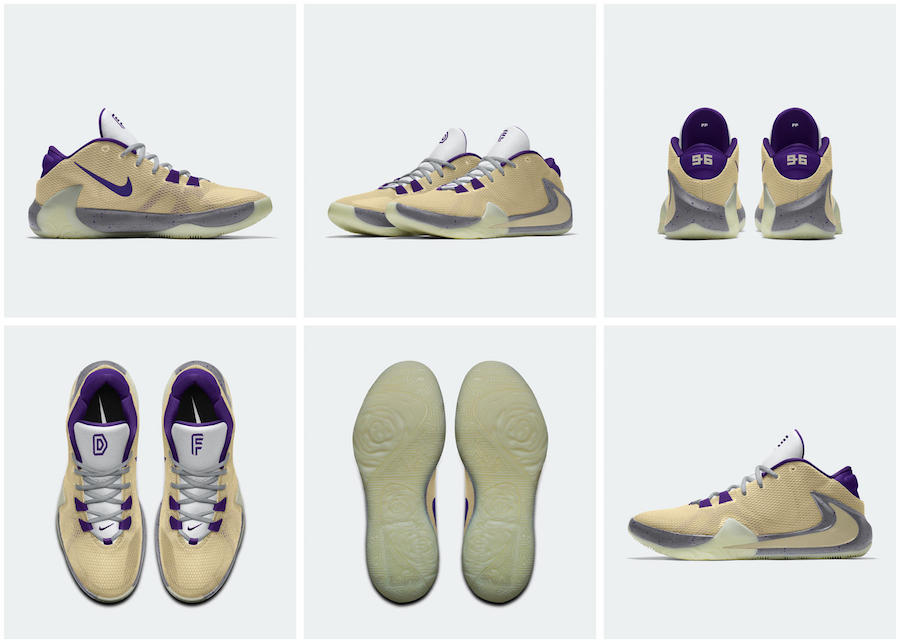 Legacy is the word that Antetokounmpo wanted to carry through his shoe, with regal purple accents a perfect match for his team-inspired base yellow. The word is embossed on the inner tongue to remind him to represent his familyโs name every time he plays.