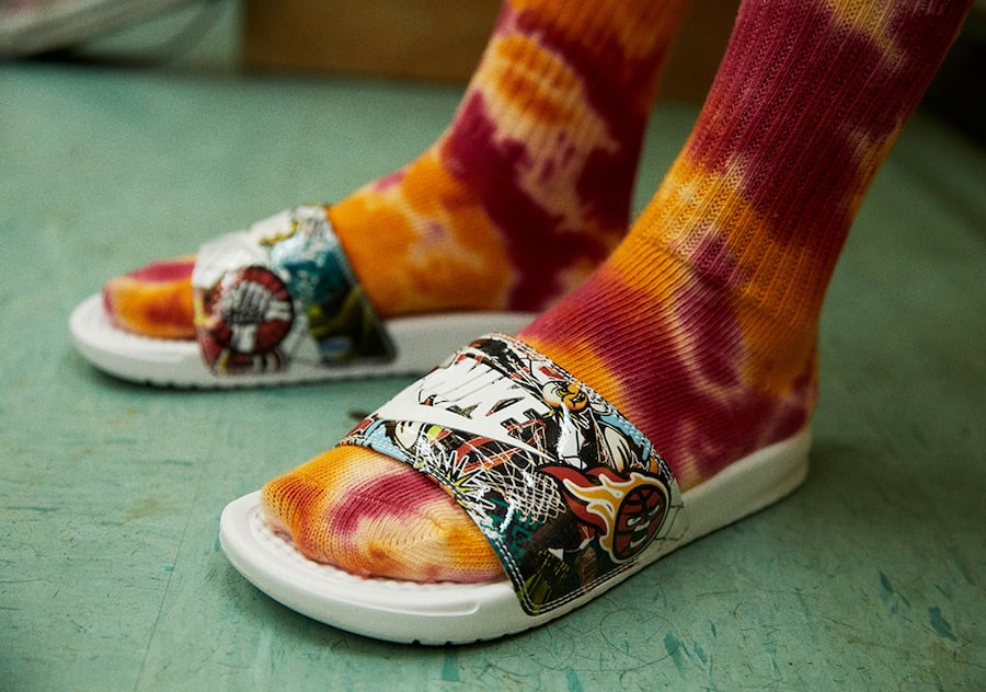 Included in the pack is the Air Flightposite, Shox BB4, Air Force 1 High, Air Force 1 Low, Air Force 1 Jester XX, Air VaporMax 3.0 and the Benassi JDI. Each features a collage pattern that points toward the stylistic influence of early 2000s hoops culture in China, recalling the days of basketball posters and locker-room door customization.