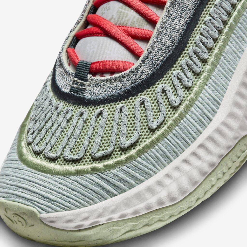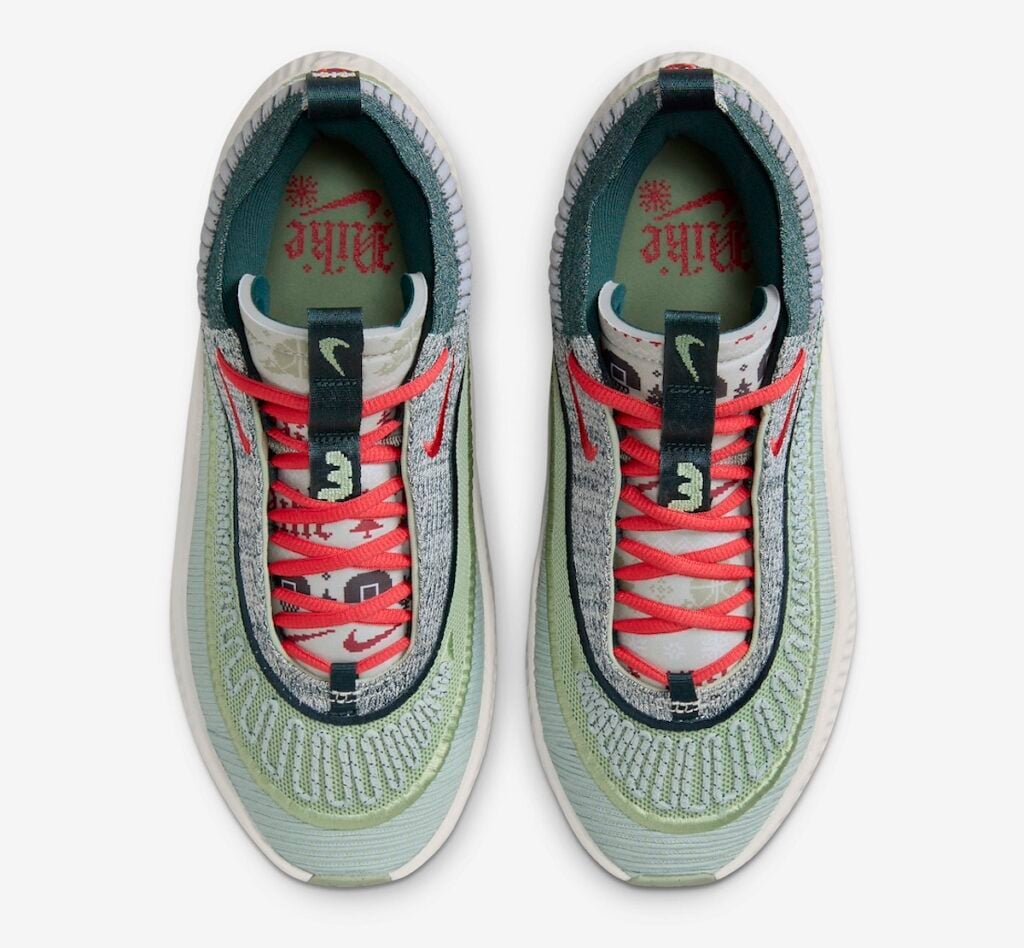 This rendition of the Nike Cosmic Unity 3 comes dressed in a Light Silver, Deep Jungle, Honeydew, and White color combination. As you can see, this pair takes on a duller look compared to the other Christmas kicks but still gets the holiday spirit across. The Swoosh and number 3 embroidered on the tongue labels resemble an Ugly Christmas sweater, while a snowflake is embroidered on the heels. Various shades of Green adorn the panels with Red on the embroidered Swooshes, laces, โCosmicโ and โUnityโ on the heels. Other details include Sail on the midsole and a full-length Zoom Strobel.