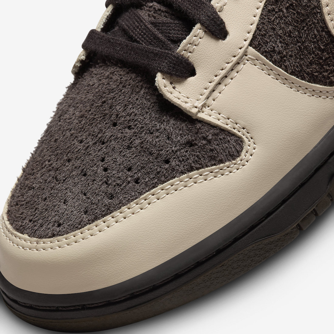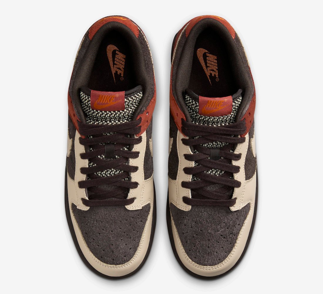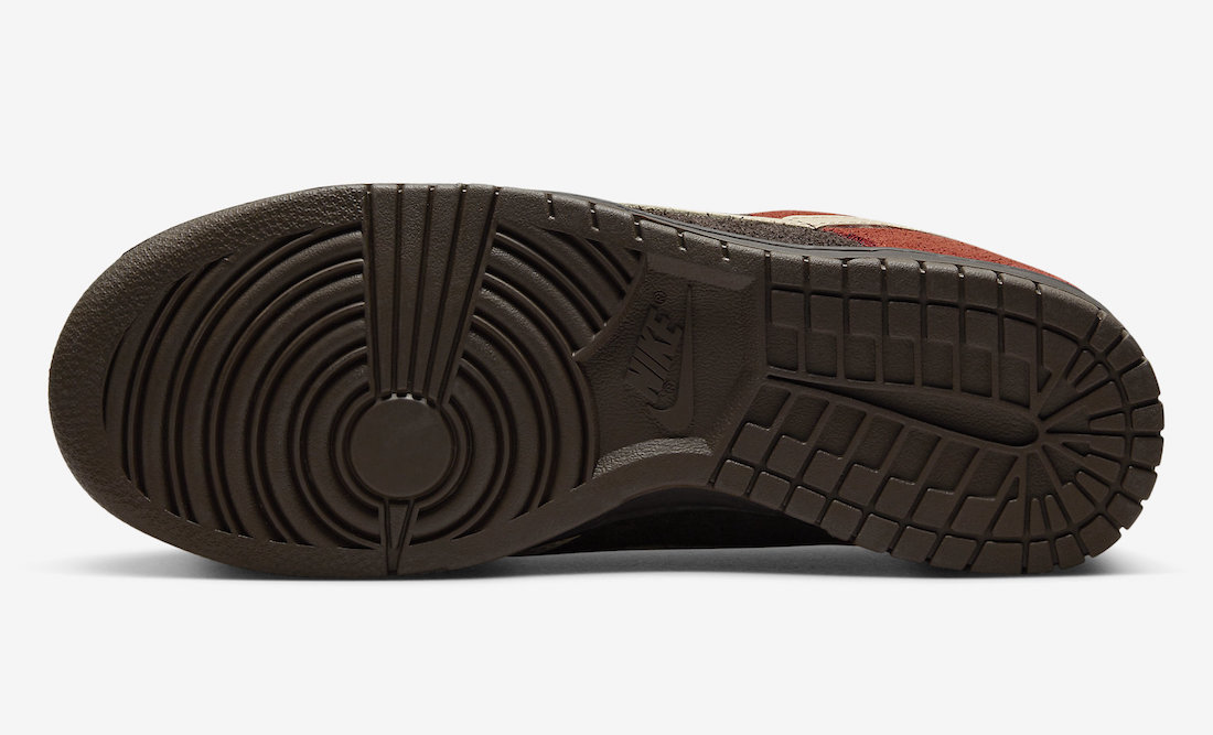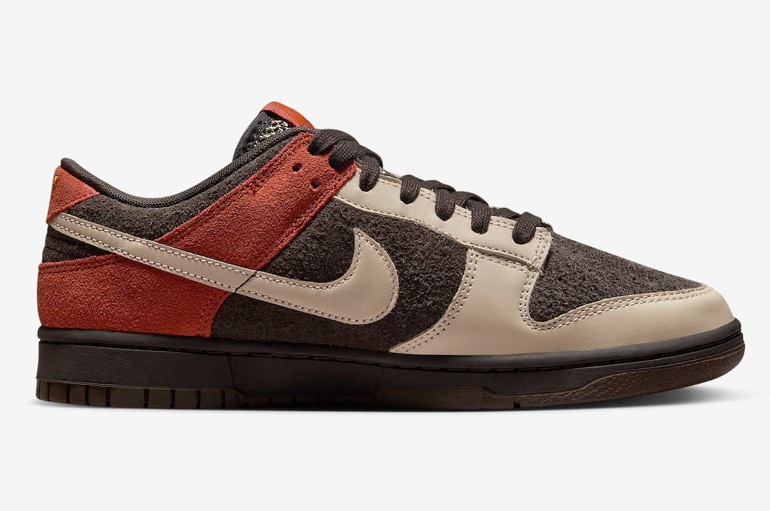 This Nike Dunk Low comes dressed in a Velvet Brown, Sanddrift, and Rugged Orange color combination. The shoes are inspired by the fur of the red panda, a mammal native to the eastern Himalayas and southwestern China. Utilizing dark suede underneath with matte leather on the overlays by the heel and a lighter hue around the toe. Other details include Red on the heels and a two-tone rubber sole.