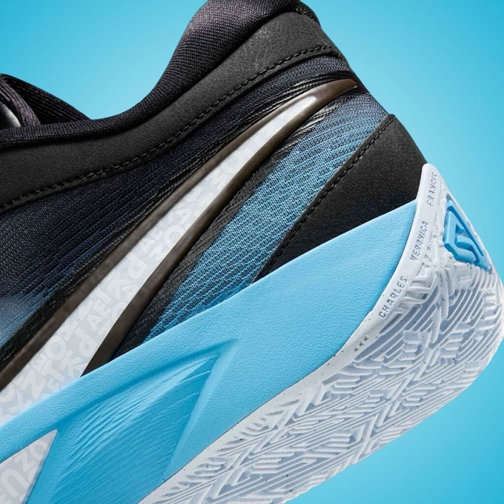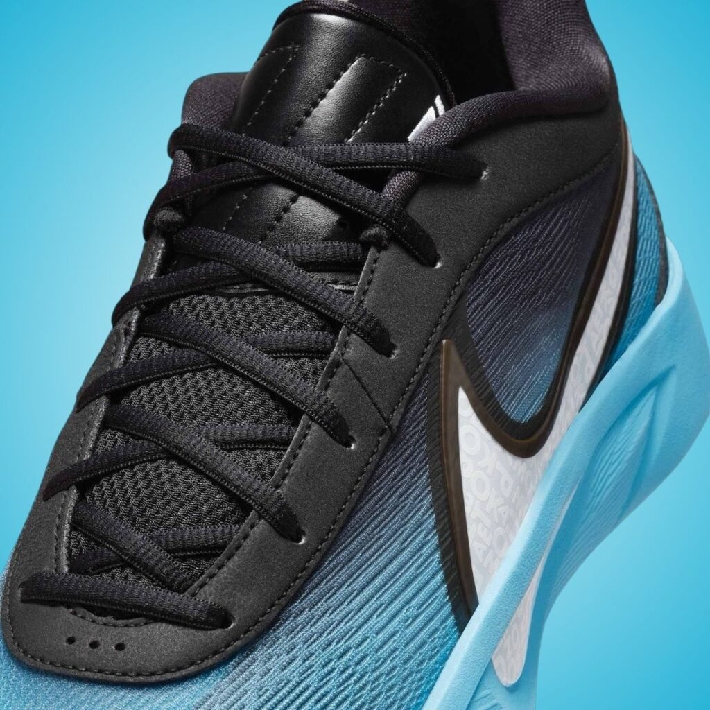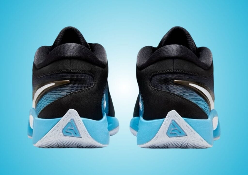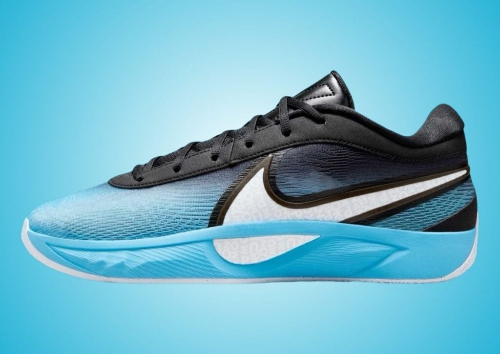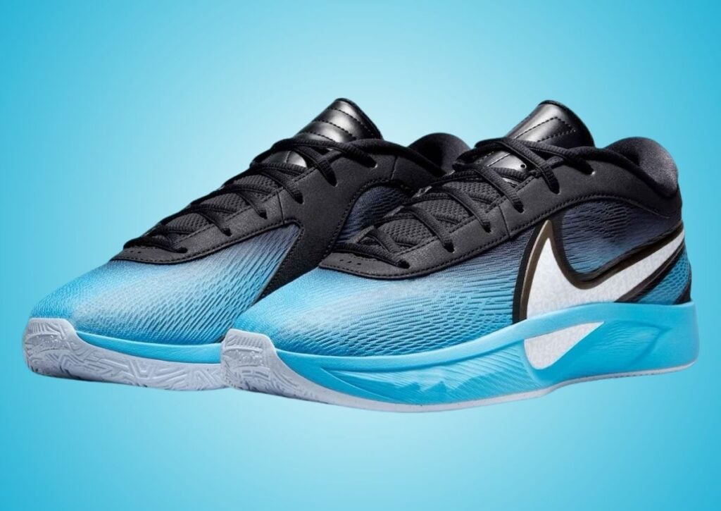This Nike Giannis Freak 6 is dressed in a Noir, Blue Tint, Blanc, and Baltic Blue color scheme. Featuring a gradient design, the upper fades seamlessly from an Icy Blue at the toe to Black at the heel, giving them a winter vibe. A bold White Swoosh on the lateral side makes the branding stand out. Giannis Antetokounmpoโs last name appears in a creative, scrambled font, celebrating the Greek Freakโs personality. Black runs across the eyestays, tongues, and laces while a unique logo lands on the insoles. Other details include a Blue midsole and a White rubber outsole.