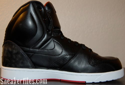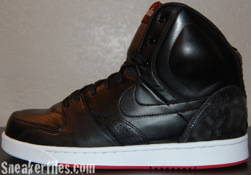 If you like the Nike Air Yeezy, but not a fan of the multiple colors, then the Nike RT1 might be your cup of tea. The first pair of Nike RT1 Highs feature Black, Varsity Red and White color scheme. As you can see, the Nike RT1 does not have the same midsole and outsole as the Air Yeezy, nor the strap. The Nike RT1 Black / Black Varsity Red – White will be available April 1st 2008, but some retailers have released them early.