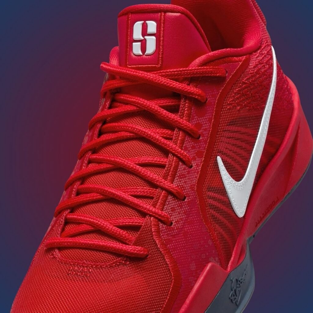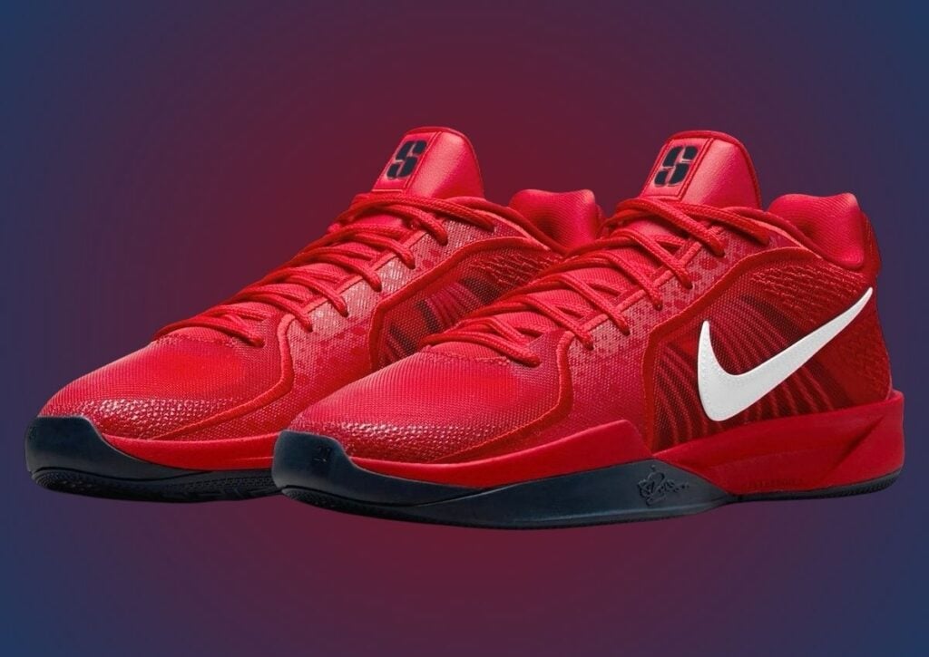 As mentioned, this Nike Sabrina 2 has a patriotic theme, with a Sport Red, White, and College Navy color scheme. Looking closer, it features Red throughout, with accents of White on the Swoosh logos and other branding. College Navy fills in the โSโ on the tongues, liner, and rubber outsole. As for the build, it comes with mesh on the upper and synthetic overlays.
