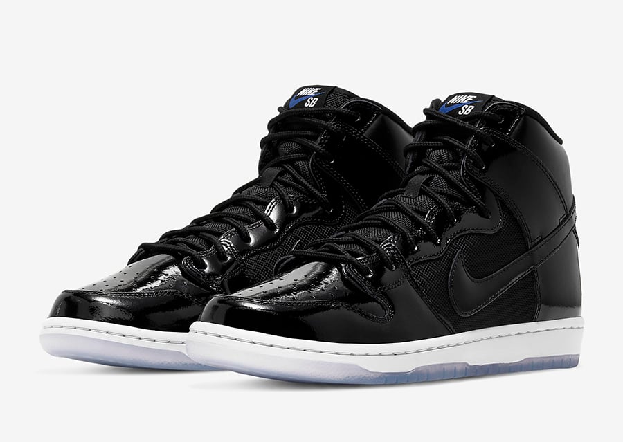 Going back to 2011, we saw the โSpace Jamโ theme applied to the Nike SB Dunk Low. Looking closer this Nike SB Dunk High comes with Black ballistic mesh and patent leather across the upper while Concord is applied to the branding. In addition we have White on the midsole and an icy translucent outsole. More highlights includes โSBโ logo on the heel which is the same font as the Air Jordan 11s โ23 or โ45โ.