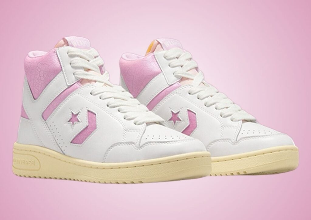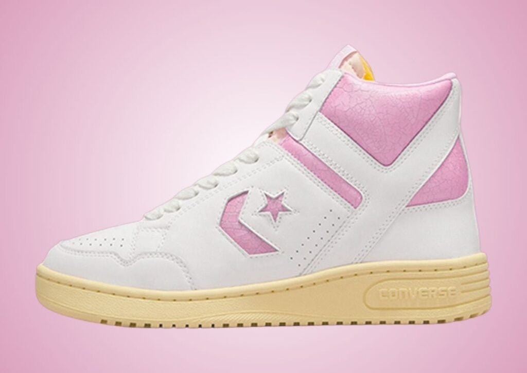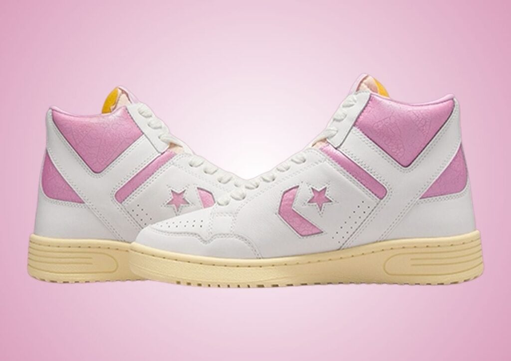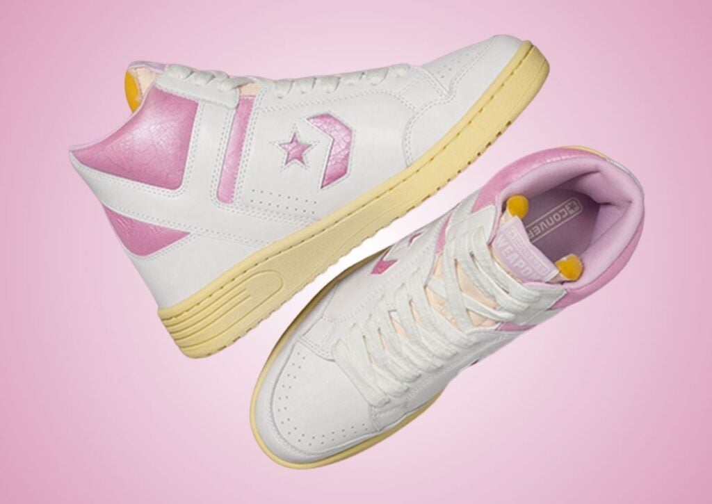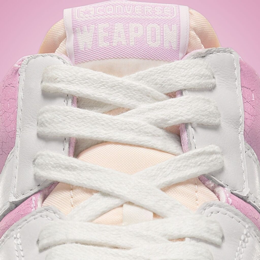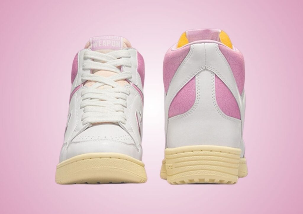 Fans of vintage kicks and Shai Gilgeous-Alexander can appreciate the release of this Converse Weapon Leather. Highlighted in White and Pink, it also has cracked leather and an aged sole, giving it a โ80s vibe.