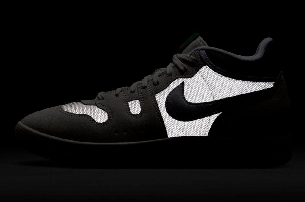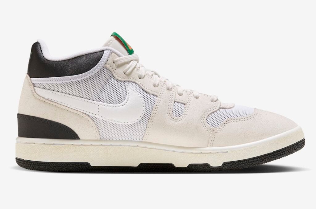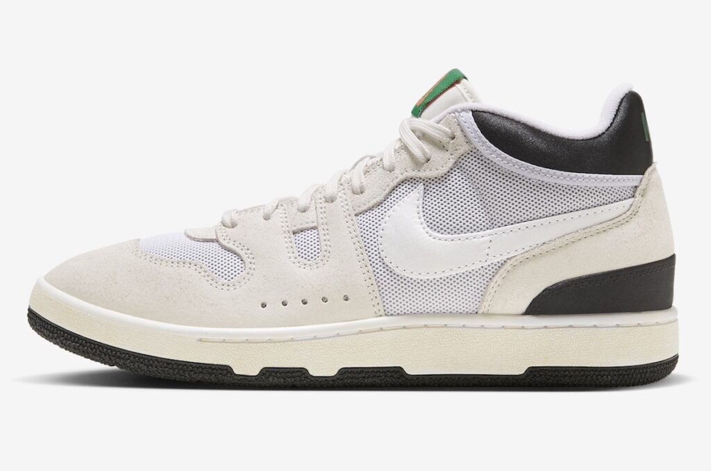 This Nike Mac Attack by Social Status comes dressed in a combination of Summit White, Pine Green, and White. Highlighted with a White premium leather upper with fine suede details and a 3M reflective layer. Ivory nylon finishes on the Swoosh, a Black nylon ankle collar, and heel foxing, revealing a surprise hairy suede Black color underlay below the Swoosh layer.ย