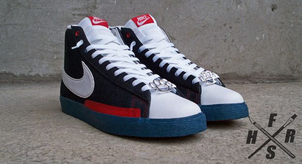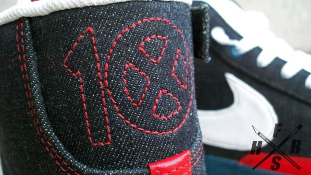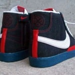 Awhile ago, we previewed the Nike SB Blazer High ‘UNDFTD’ custom, inspired by street brand Undefeated, which sparked media attention all over the sneaker community. Another Desp1 (Fresh&Fly) creation comes to us today – The Nike SB Blazer High ’10 Deep Patriot’ in high quality denim.