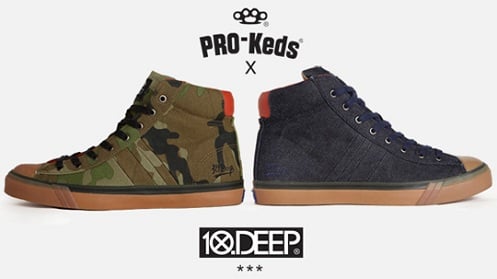 This past summer we saw Pro-Keds reintroduce the Royal CVO Canvas. This time around, the brand has worked on another one of its classic silhouettes in conjunction with 10.Deep. The two brands revamped the Royal Plus basketball sneaker with a padded collar, metal eyelets, branding by both teams, and Pro-Keds stripes on the vulcanized rubber midsoles- yielding what is being called the Veteran. In this collection there will be two different colorways of the Veteran pictured here. Beginning this Friday, January 7th, 10.Deep’s online shop and Los Angeles location will make them available for purchase. The following day, select other retailers will do the same.