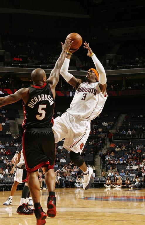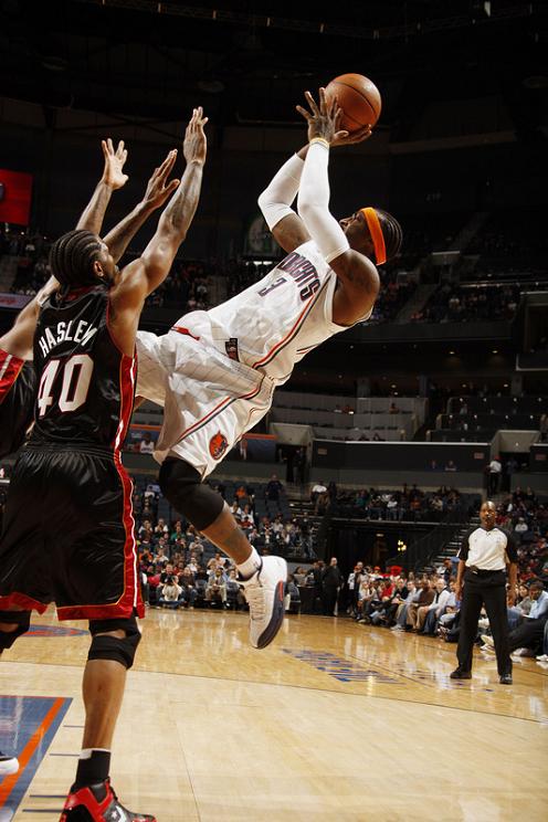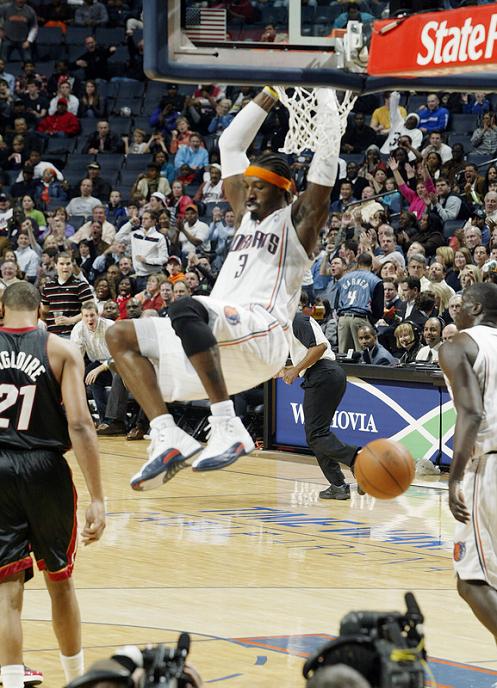 Last weekend a number of NBA stars treated basketball and sneaker fans alike to some eye candy by putting on a display of different Air Jordan XIIs and Air Jordan Player Exclusives. Last night the trend continued in Atlanta and Charlotte. Joe Johnson was once again spotted in some home Air Jordan XII PEs, which, because of the similarities in team colors, looked a lot like the pair that Gerald Wallace wore at home against the Miami Heat. Wallace was joined by Stephen Jackson with the “Rising Sun” Air Jordan XII again, while the Heat’s Dwyane Wade showed us the away version of his Air Jordan XII PE we showed you yesterday. Enjoy the pictures of both these NBA superstars and their Air Jordan XIIs of choice after the jump.