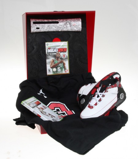 Video game producers 2K Sports have teamed up with Jordan Brand to collaborate on a special Jordan CP3 package. Our peoples at Dime Magazine provide a complete look at the package which includes a display case, NBA 2K8 and NBA 2K9 for Xbox 360, an Xbox 360 faceplate, and a t-shirt designed by artist ISO50. Chris Paul’s Jordan CP3 will be outfitted in 2K Sports’ colors and logos. The 2K Sports x Jordan CP3 pack will be limited to 50 pairs spread out through select boutiques in New York City, Los Angeles, San Francisco, Atlanta, and Chicago. No word yet on price or release date.