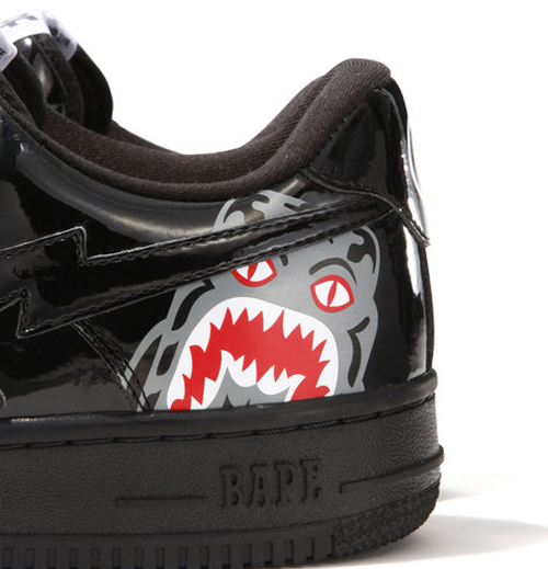 On top of the two NYC and LA exclusive ‘Tiger’ Bapestas we showed you last week, Bape has released another all-Black version of the limited edition sneaker. Dubbed the ‘Black Tiger’, the model features a patent leather blacked-out upper and Grey/White/Red tiger graphic on the heel panel. Like its two tiger motif predecessors, the model is available exclusively from Bape flagship stores in New York and Los Angeles.