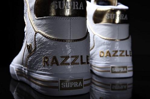 We’ve already shown you previews of a number of 2010 Supra collections, including some Vaider highs and lows. The Supra Vaider high shown here, however, is by no means a general release. Pictured here is the result of a collaboration between the ABC network and the Supra design team- the “Lost” Vaider high, which pays tribute to what will be the last season of “Lost” that starts later tonight. While 50 of these white/gold crackle shoes were designed with most handed out to a collection of cast and crew members, 17 pairs were not handed out. Those 17 will start being sold exclusively from the FACTORY413 starting today- so locate the one closest to you and find out if they have these in stock if you’re a huge Lost fan who just MUST have this shoe.