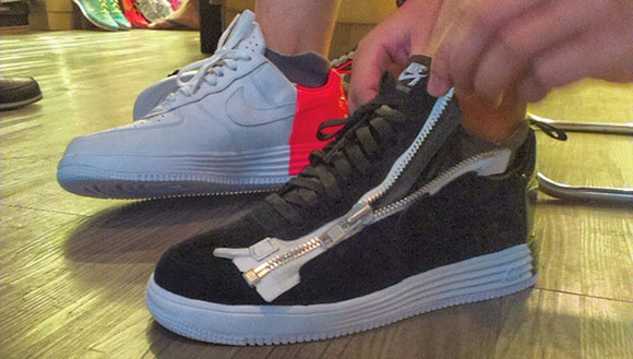 Both pairs of Nike Lunar Force 1 lows feature a side zipper which allows you to fully zip them up. Unique to Nike, but since Acronym is known for outerwear, the side zipper makes sense. You can also see on the side the swoosh isn’t seamed all the way down due to the zipper.