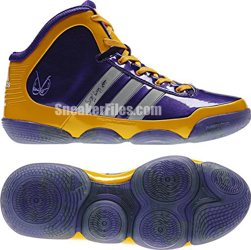 The adiPure Snoop Dogg upper features his signature eyes logo and the tongue design is a basketball hoop with sneakers dangling as call-out to hoops and power lines from his 213 neighborhood.