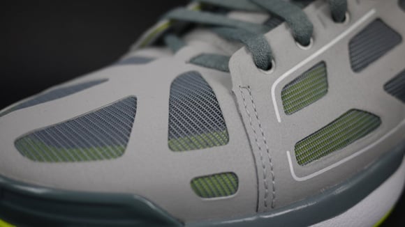 Looks like a large amount of colors will release of the Adidas AdiZero Crazy Light. This time, we show you the Lead, White and Electricity colorway. Grey was added to the SPRINTWEB, with a darker grey on the mesh, midsole, and SPRINTFRAME system. White is placed on the adidas 3 stripes, and insole. Last, the Electricity (neon green) are spread out amongst the shoes. The Adidas AdiZero Crazy Light Lead/White/Electricity releases June 3rd 2011.