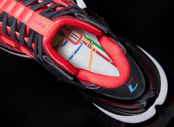 Formerlyย called the “L-Train” and “Christmas”, this model of the Rose 2 features a dominant ย metallic red, black lacing and heel supports and “The L” printed on the heel. The insole boasts the Chicag subway map to complete the look.