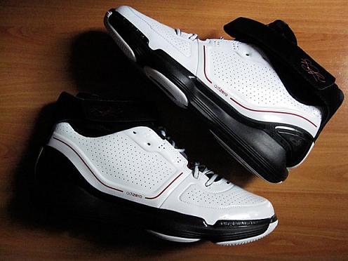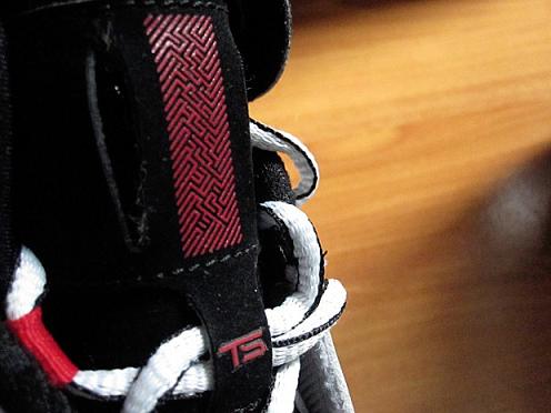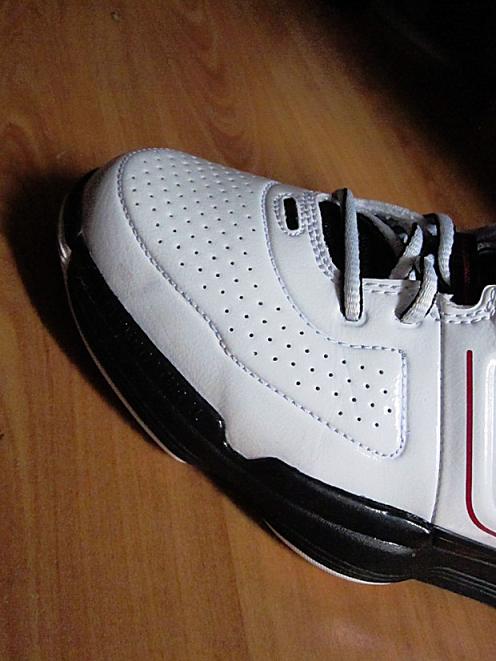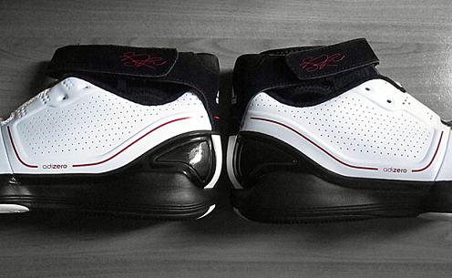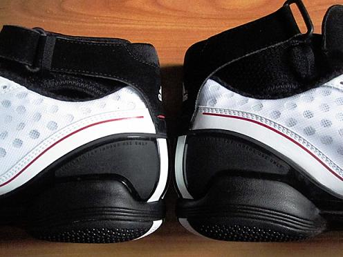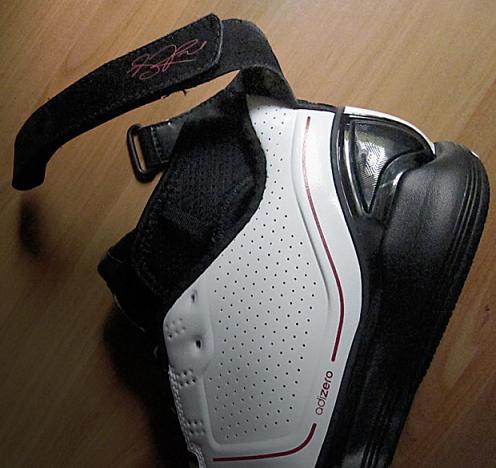 Today we have a good look at the white/black โred version. The upper features perforated leather with red accents sitting atop a black outsole. A built in ankle support system and adjustable strap for stability is complimented with a heel cup for additional ankle support. The most intriguing aspect is on the heel, it states these were โDesigned for indoor use onlyโ. Since most players do not have ample access to indoor courts this may limit your playing possibilities unless an outdoor version is produced.