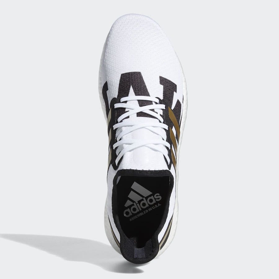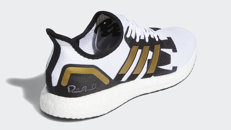 Featuring a Cloud White and Core Black color combination. Utilizing White and Black Primeknit across the upper while Metallic Gold lands on the lace cage and heel counter. You will also notice Mahomesโ signature and MVP across the toe. Finishing the look is a White Boost midsole and Black rubber outsole.