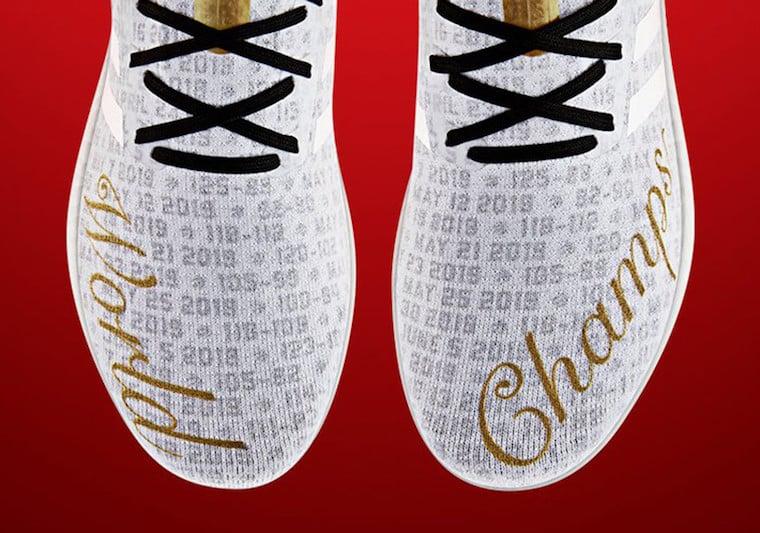 This adidas AM4 comes with dates and final scores of their entire post-season games. In addition we have Gold and Black detailing while Red lands on the heel clips. In addition we have โWorld Champsโ across the toe, White lands on the Three Stripes branding while the Raptors logo is placed on the heels.