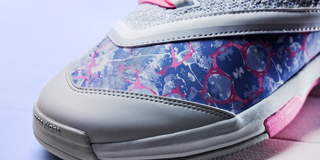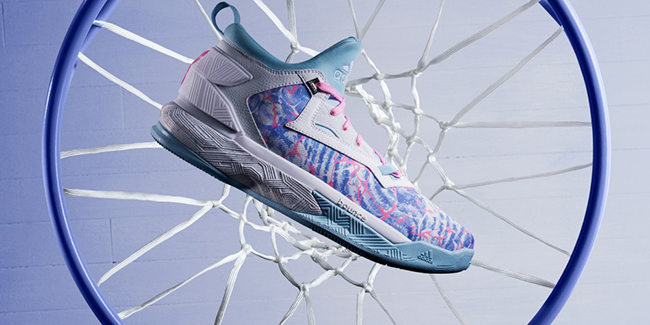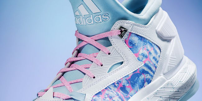 The D Rose 6 features pastel blue tones with pink accents on the lace loop, tongue, webbing straps, heel tab and torsion bar. Designed with a marble dyed Easter egg print on the upper, the silhouette features an iced outsole, plush sockliner and clean white contrasts.