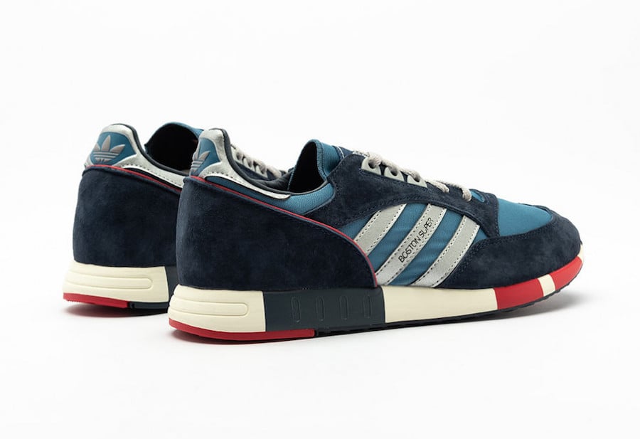 The adidas Boston Super first released in 1984 and has returned in its original form. This pair comes dressed in a Stone Wash Blue, Metallic Silver and Dark Slate color combination. The look is highlighted with vintage inspired midsoles, Metallic Silver branding while Black, Grey and Red land on the rubber outsole.