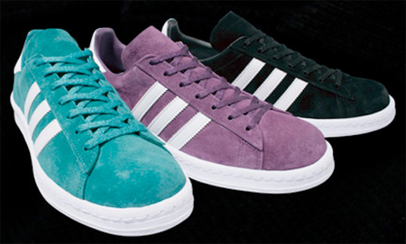 Last year, Foot Patrol teamed up with Adidas to release a few Campus models in a similar style seen above. Three new Campus models are set to be released for Adidas’ Fall ’08 collection, available in turquoise, purple and black. The shoes are made up of solid colored uppers that also feature white stripes, a perfect combination. Via hs.