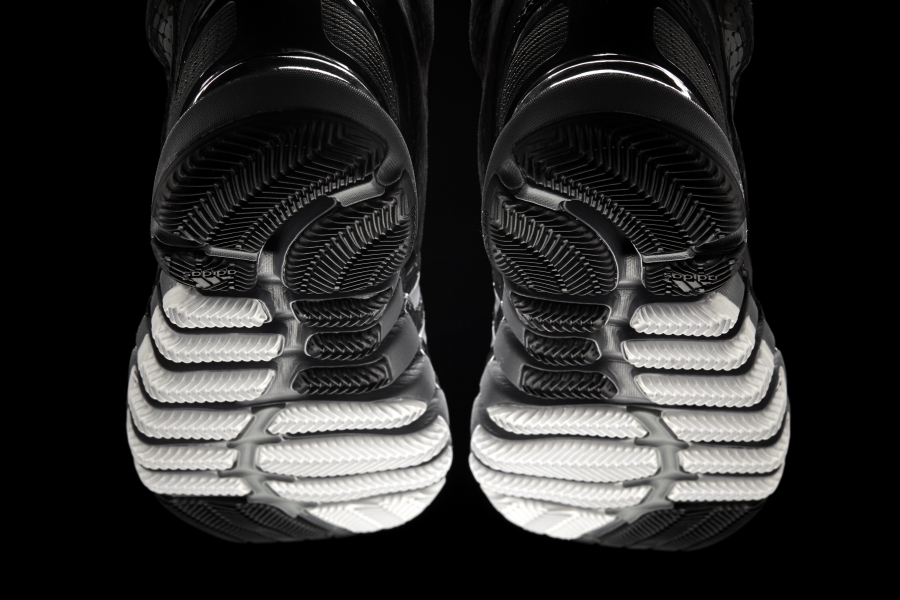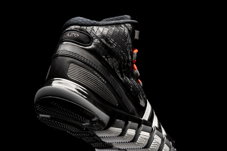 Set in a black and lead color combination, these lightweight and flexible sneakers don solar red laces and white Three Stripes branding. What also shows a camouflage-like upper design, these kicks aim to improve a players traction and agility while on the court.