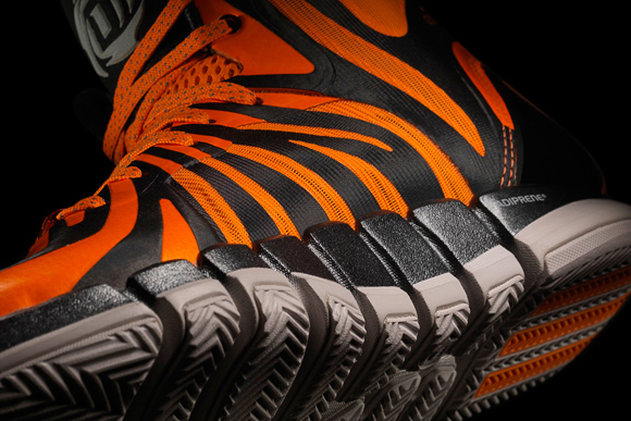 Decked out in a tiger stripe aesthetic, this adidas D Rose 4.5 takes on an official orange and black colorway with bone accents and signature branding that include “Chicago’s Finest” behind each tongue.