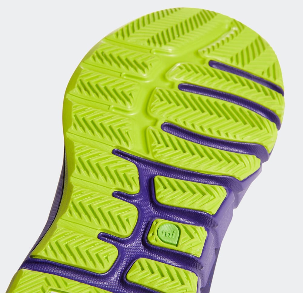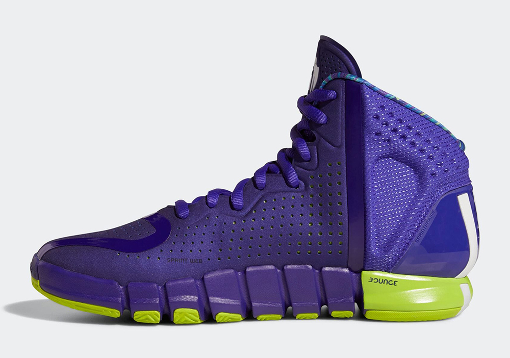 This adidas D Rose 4 retro is inspired by the nighttime cityscapes and how a city can illuminate shades of Purple at the perfect time. Going over the pair, we have a deep Purple shade throughout while perforates on the panels allow a vibrant Green to peer through. The traditional D Rose logo lands on the lateral ankle while the aforementioned shades and Blue adorn the liner. Lastly, Green runs across the outsole with White Three Stripes branding.