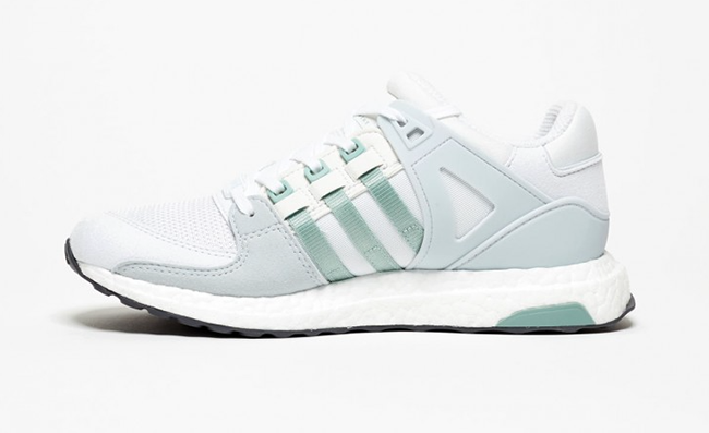 Going with a softer them, this modified adidas EQT comes dressed in White, Tactile Green and Clear Grey. Constructed with mesh and suede on the overlay, the uppers feature a combination of White and Grey. Following we have Tactile Green on the Three Stripes. Finishing the look is Black on the outsole.