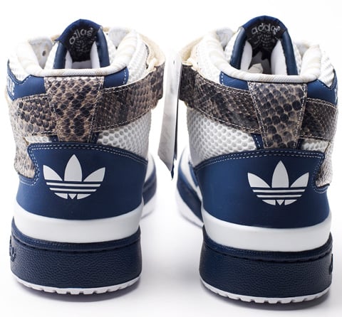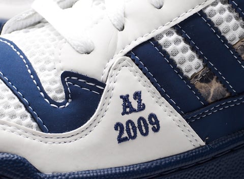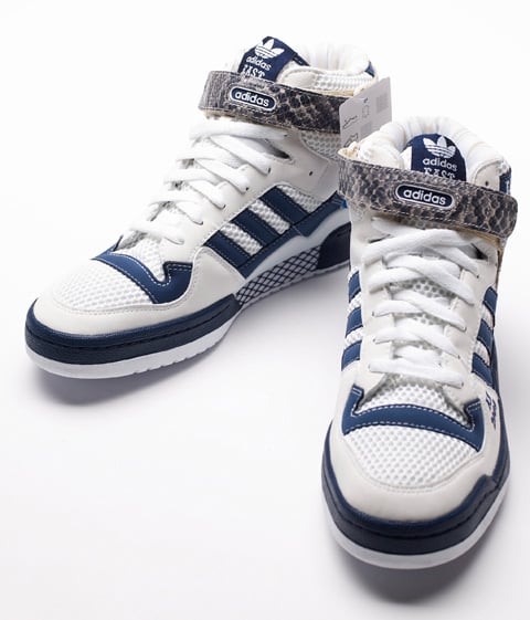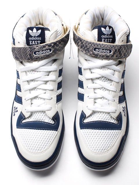 While Nike has rolled out a collection of sneakers devoted to this years NBA All Star Game in Phoenix, Arizona. Not to be outdone, ย adidas is also making a splash this year with a special make-up of the Forum Mid. Modeled after the Eastern Conference, these Forum Mids are composed of the easts’ colors, white and blue colors with “EASTSIDE” near the collar. Other ASG references include “AZ 2009” written on the toe and snakeskin accents on the strap and sides of the sneaker. Composition wise, the Forum Mids feature a combination of mesh, leather and 3M. Unfortunately, these will only be given to VIPs at All Star weekend. Via SOLE blvd.