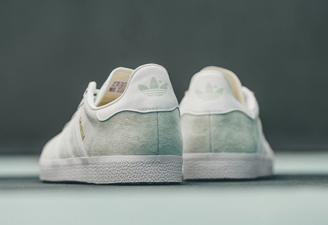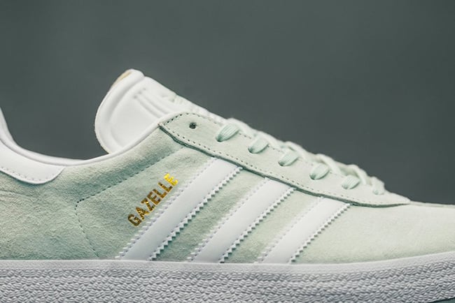 Looking closer, this adidas Gazelle comes with a Ice Mint shade on the uppers while being constructed with suede. In addition, White is then used on the Three Stripes which is done with leather and the midsole. The last touch is Gazelle written towards the heel in Gold.