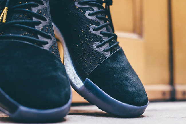 Having a premium look, this adidas Harden Vol 1 features a Core Black and Metallic Gold color combination. Looking closer, you will see Black nubuck while Metallic Gold lands on the Three Stripes, lace tips and hinted on the panels and tongue. Using a semi-translucent outsole which exposes the White Boost midsole.