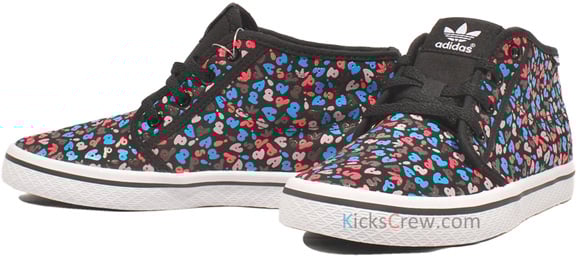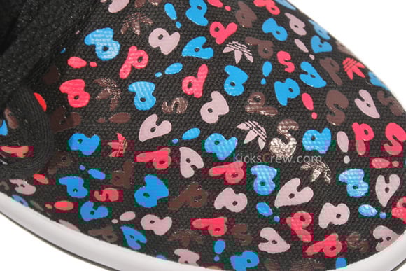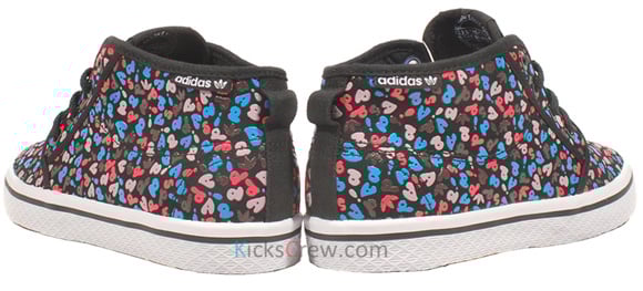 The womens made adidas Honey Desert takes a Chukka style upper and vulcanized sole. adidas used a black upper on the Honey Desert, with blue, red, two shades of pink and deep burgundy lettering print. The lettering spells adidas and features the brands logo. The shoes will be available at stores with an adidas Originals account, but you can grab yours now at KC.
