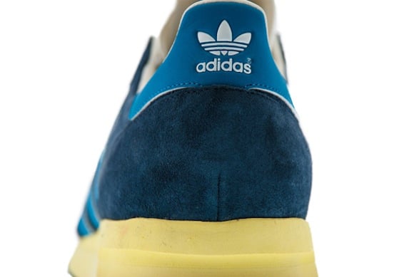 Keeping it casual, the Marathon 85 is dressed up in an elegant navy suede that accents perfectly with the brighter blue on the signature Adidas three stripes. The yellowed mid-sole adds age to the sneaker; but it is pretty clever if you think about bringing back a classic. Get it? Old.